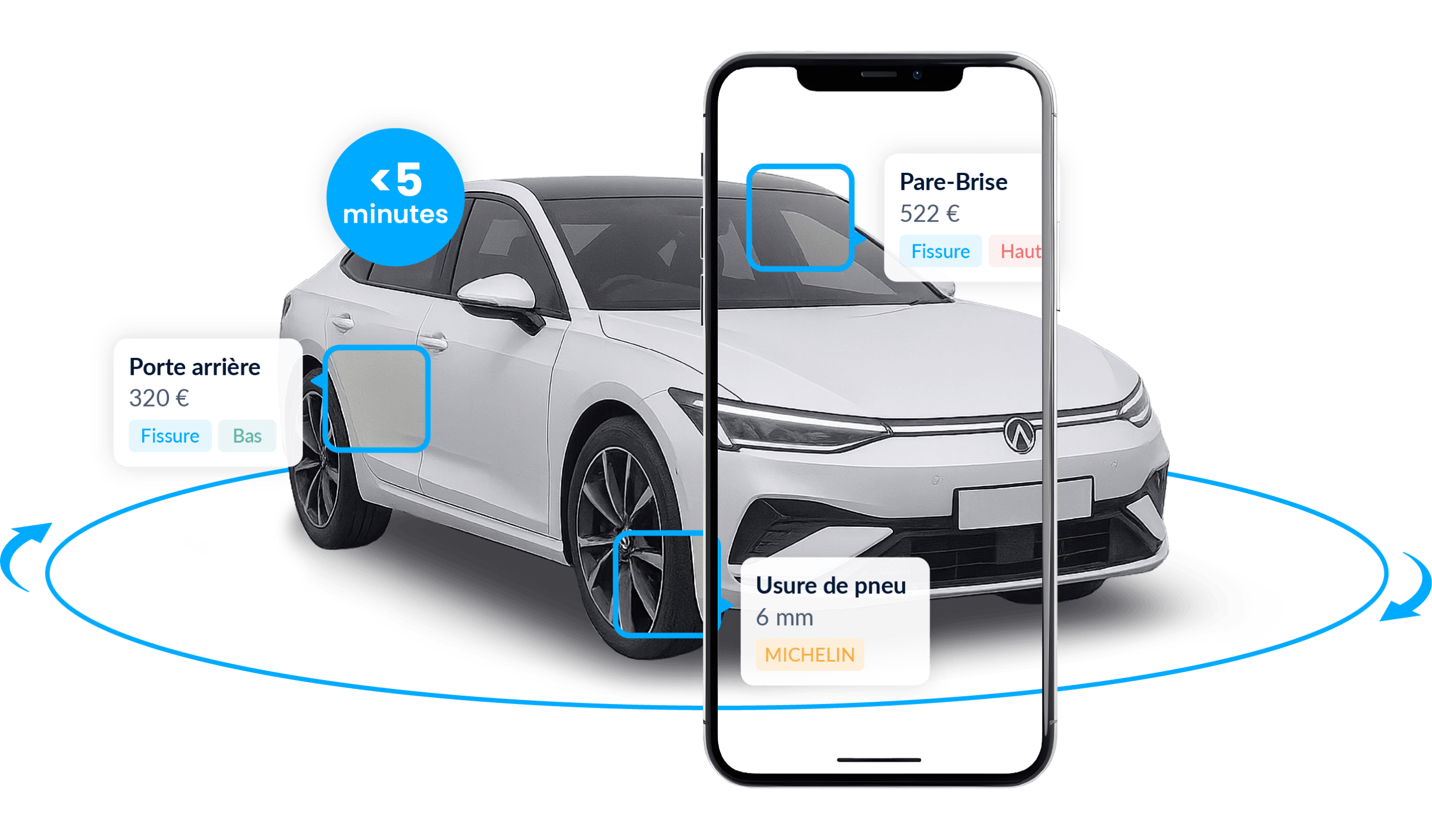 Que ce soit sur site ou à distance, inspectez, estimez et remarketez vos véhicules en moins de 5 minutes en un simple tour vidéo guidé par l’Intelligence Artificielle.
