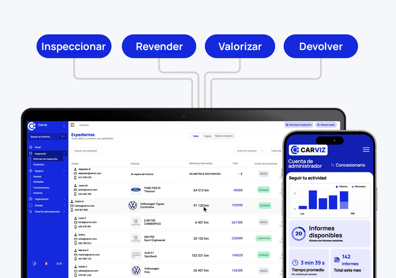 Optimiza la devolución de los alquileres y aumenta el valor de reventa de tus vehículos. Ahorra tiempo y dinero, garantizando la máxima transparencia con clientes, vendedores y compradores.